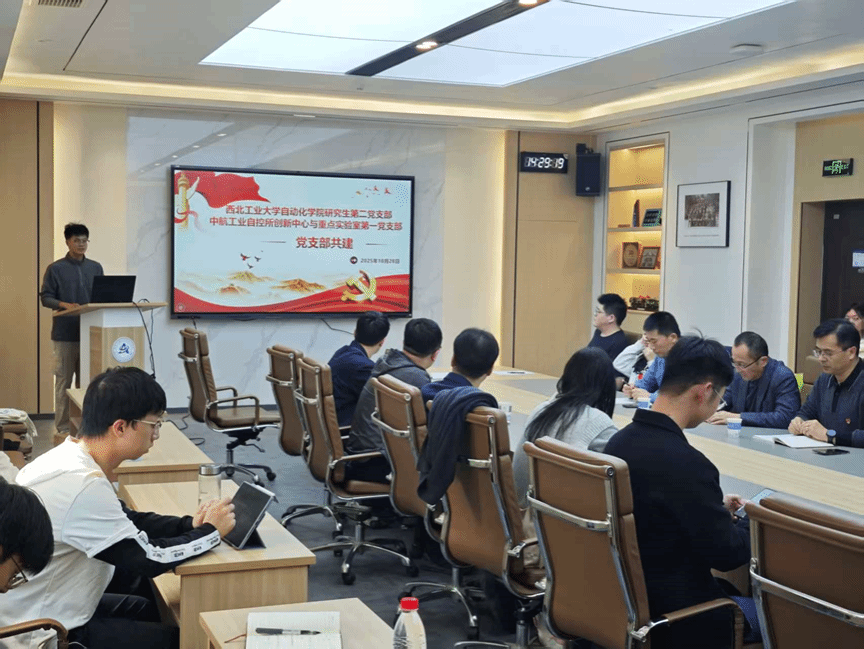 10月28日,自动化学院研究生第二党支部与中航工业自控所创新中心与重点实验室第一党支部开展党建共建活动,并签署支部共建协议。中航工业自控所创新中心党总支副书记张闻乾、第一党支部委员及技术专家代表,自动化学院党委书记孙华强,党委委员李爱军、王长青以及研究生第二党支部青年教师、学生党员代表参会。会议由研究生第二党支部书记李左主持。
