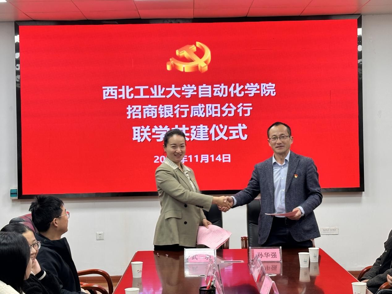 在上官镇政府,自动化学院与招商银行咸阳分行开展共建共学活动。招商银行股份有限公司咸阳分行行长助理武羽从发展历史、分行建设情况、党建业务融合情况、后续共建规划情况等进行了系统介绍,孙华强就自动化学院的发展愿景、历史沿革、组织机构、师资队伍、人才培养、科学研究以及党建工作等方面进行系统介绍,双方一致认为,本次共学共建,是在人才培养、素质提升方面的一次积极探索,大家共同探讨了如何在新时代背景下加强党建引领,推动教育事业与金融服务的深度融合。