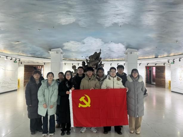 实践队党员在带队老师李奥的带领下,面向党旗庄严重温入党誓词,誓言继承先烈遗志,以实际行动践行初心使命。