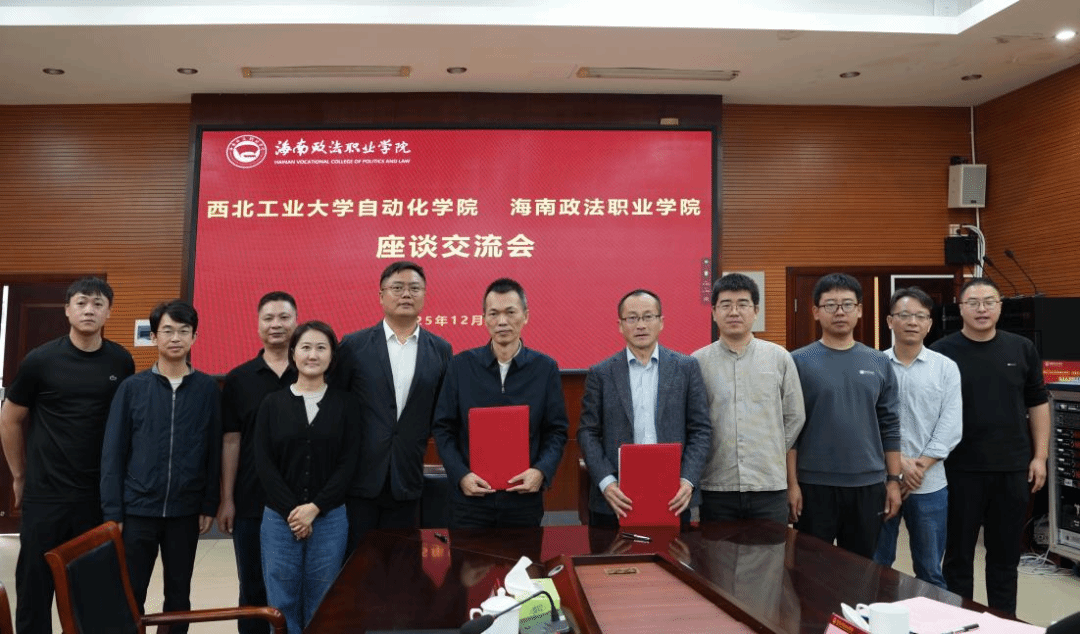 研讨结束后,双方代表共同签署了深度合作协议。此次协议的签署,标志着西北工业大学自动化学院与海南政法职业学院的合作进入实质性阶段,为双方进一步深化协同发展奠定了坚实基础。双方均表示,将以此次合作为契机,积极推动各项合作内容落地见效,共同探索“双一流”高校与地方职业院校协同发展的新路径,为区域经济社会发展贡献教育和科技力量。