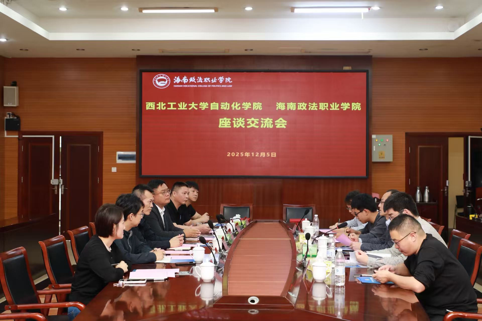 座谈环节,双方就具体合作方向进行了深入研讨。在特色学科建设方面,双方一致同意围绕智能安防、司法自动化检测等交叉领域,共同开展学科研究和课程体系建设,推动自动化技术与政法职业教育深度融合;在人才培养方面,计划搭建学生成长成才通道,同时开展师资互访、教学交流等活动,提升双方师资队伍建设水平;在科研成果转化方面,将建立科研合作机制,联合申报科研项目,推动西北工业大学自动化学院的先进技术成果在政法领域的应用落地,服务海南自贸港法治建设和区域发展需求。