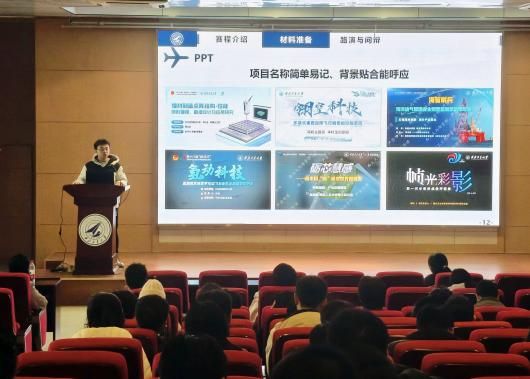 宣讲伊始,李航以“三航杯”创新大赛的含金量为切入点,系统介绍了赛事整体架构与参赛核心要求,结合典型案例逐一对评审要点进行拆解,全面覆盖开篇设计、背景分析、解决方案、商业规划、团队构成等关键维度,帮助在场学生精准吃透赛事规则,明确备赛的核心方向与发力重点。