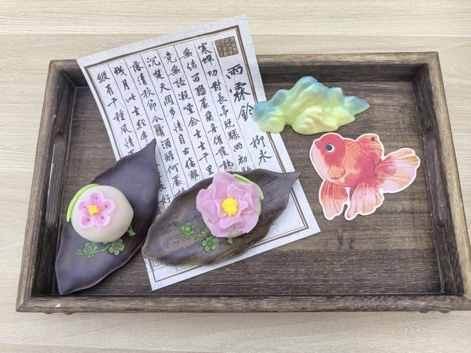 活动现场,专业老师为大家讲解了传统点心唐菓子的历史渊源、制作技巧和造型设计要点,从芸豆泥擀制塑形,再到色彩搭配、花纹雕琢,每一步都细致示范、耐心指导。老师们认真揣摩手法,亲手揉、捏、压、塑,将普通的食材化作一个个造型精巧、软糯可爱的唐菓子。现场气氛热烈而温馨,欢声笑语不断。