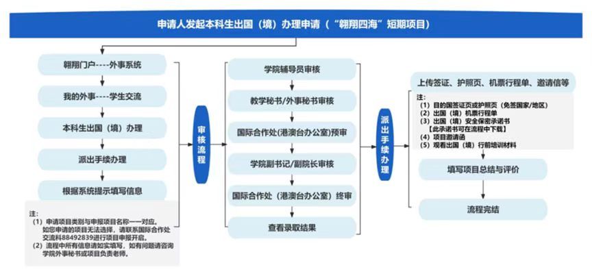 2.本科生参照下图登陆翱翔门户-外事系统进行网上手续办理。