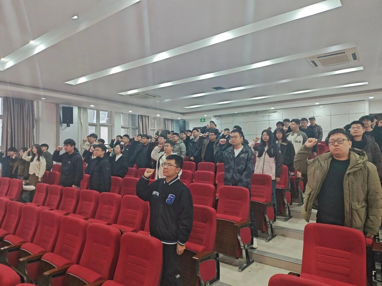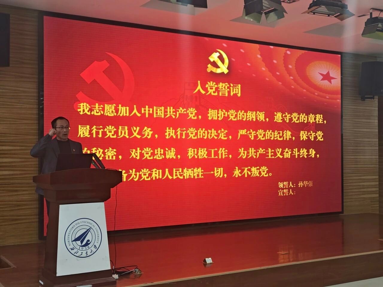 “最后一次党课”上,孙华强以“我是否是一名合格的共产党员”为核心设问开篇,带领大家重温了党员的义务与权利,强调履责守规是行使权利的前提;随后结合全国两会精神,解读了正确政绩观核心要义,要求大家践行“立党为公、为民造福、科学决策、真抓实干”总要求。他紧扣校训校风,勉励毕业生秉承“总师型”人才特质,将个人发展融入国家大局。最后,孙华强带领全体党员重温入党誓词,嘱托大家以誓词为行动指南,校准三观与政绩观,永葆党员本色,争做有理想、敢担当、善创新的新时代建设者,在新征程上彰显青年党员的使命与担当。