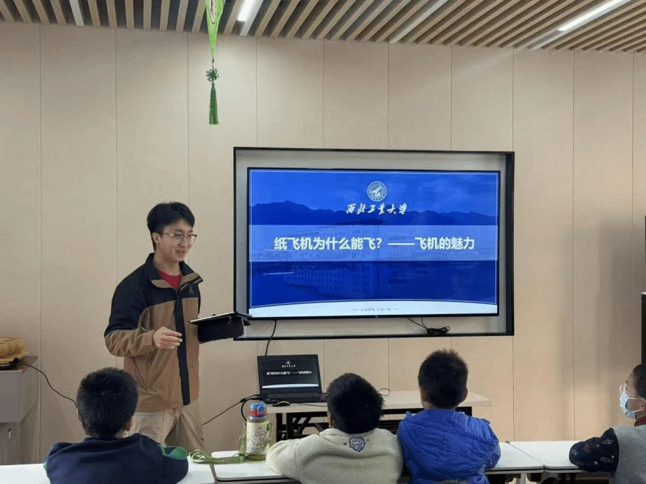 课程尾声,志愿者系统总结了科普内容,并向小朋友们深入宣传了西北工业大学的三航学科特色与“总师育人文化”的深厚底蕴。同时,他们鼓励孩子们持续观察生活中的飞行器现象,保持对航空领域的探索热情与好奇心,未来更可投身三航事业,为国家航空科技发展贡献力量。本次科普课以纸飞机这一趣味载体为切入点,不仅拓宽了孩子们的视野边界,更在他们心间悄然播下了航空梦想的种子,培育出对三航事业的情怀与向往。