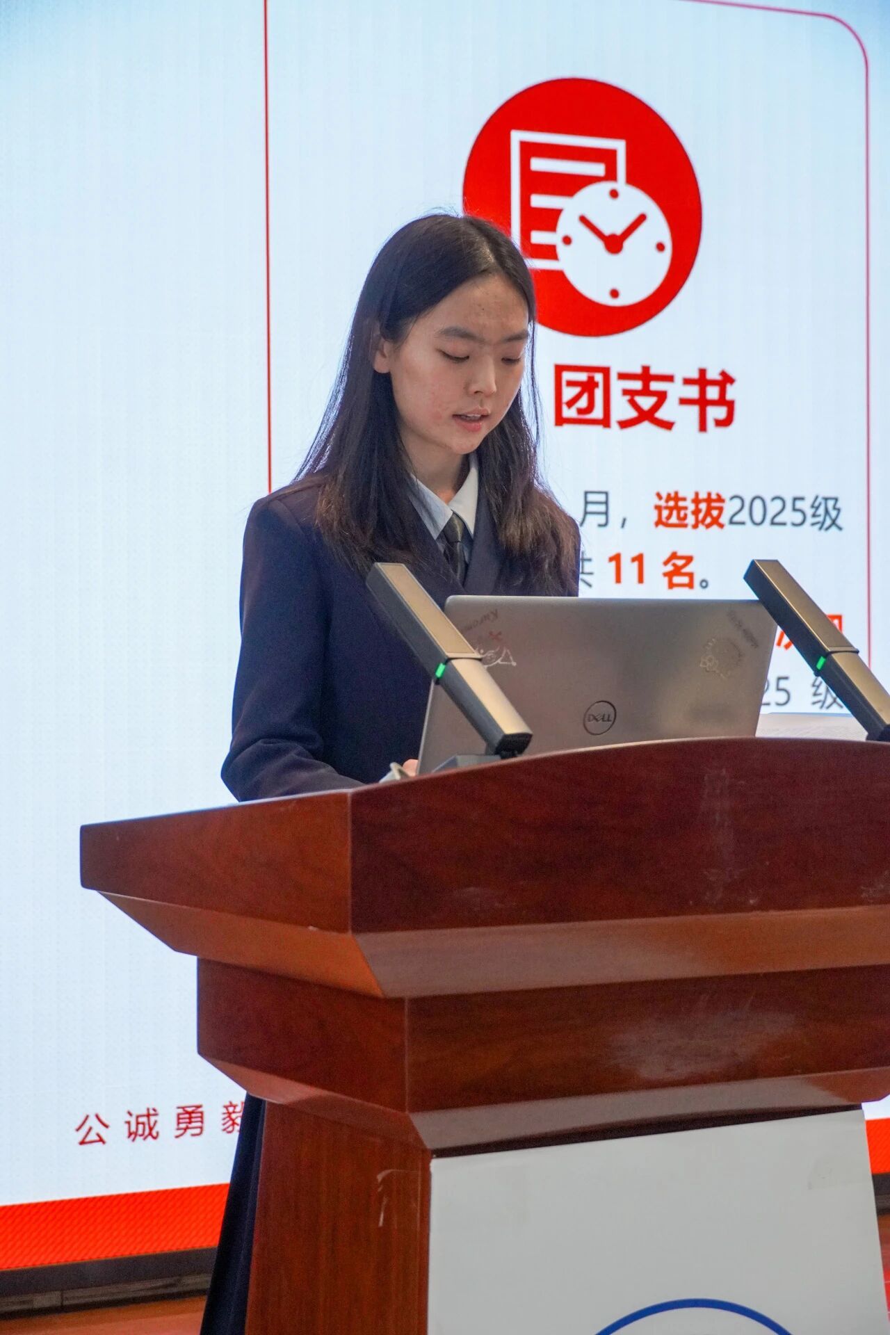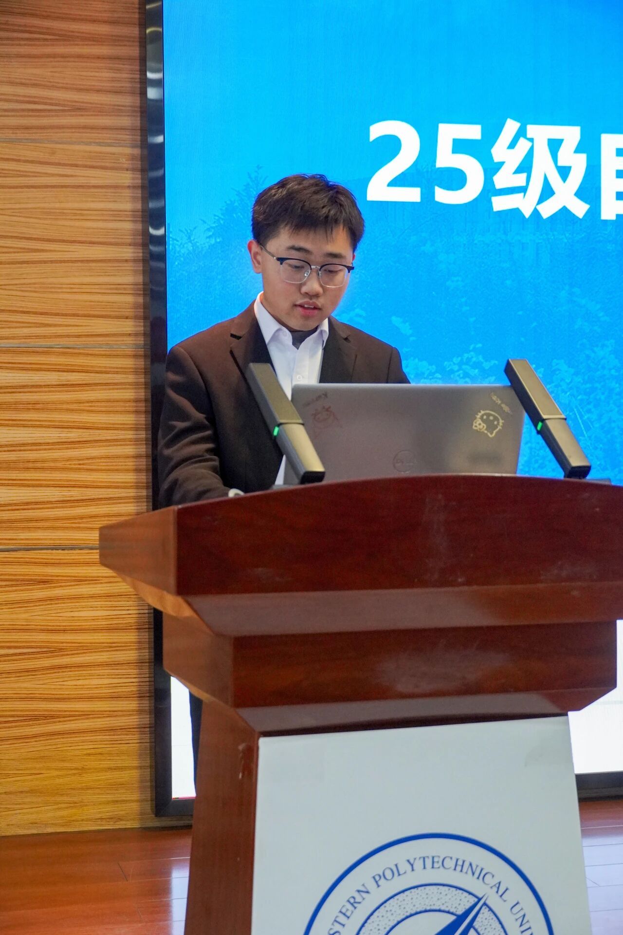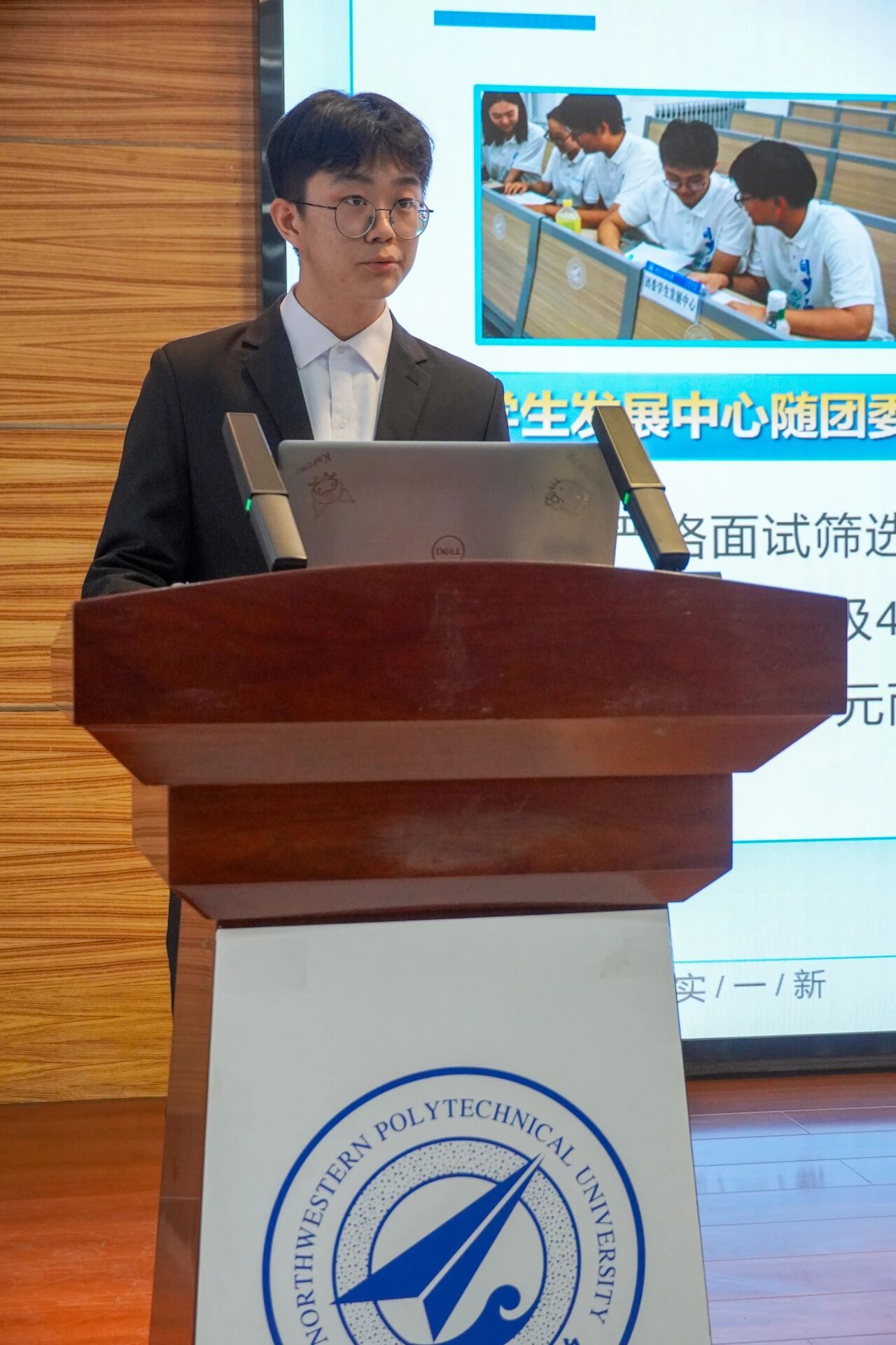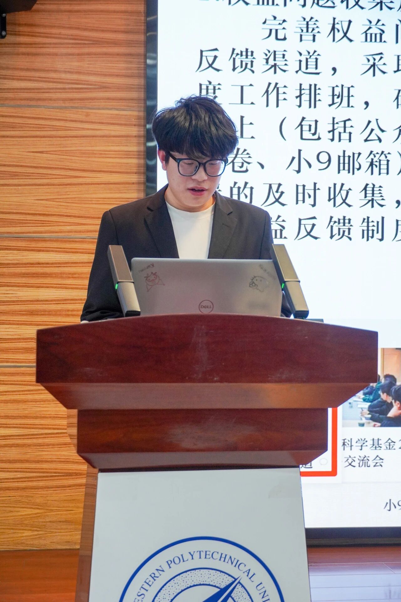 会议第三项,各部门负责人进行本学年工作汇报。学生发展中心刘嘉豪、志工部周晶晶、组织部陈芊朵、权益中心吴胡奕、宣传中心高睿、文体中心车昊宇及学习实践部白皓瑞依次上台。他们的汇报内容涵盖微团课大赛、旱地冰壶大赛、元旦游园会、迎新晚会等多项活动的筹办工作,涉及团课组织、志愿时长评定、学业帮扶、公众号运营、海报设计等具体事务。各负责人结合部门工作概况,既展现了团队风采与协作精神,也坦诚指出工作中存在的不足,并对潜在问题进行了深刻反思,为后续工作开展明确了方向。