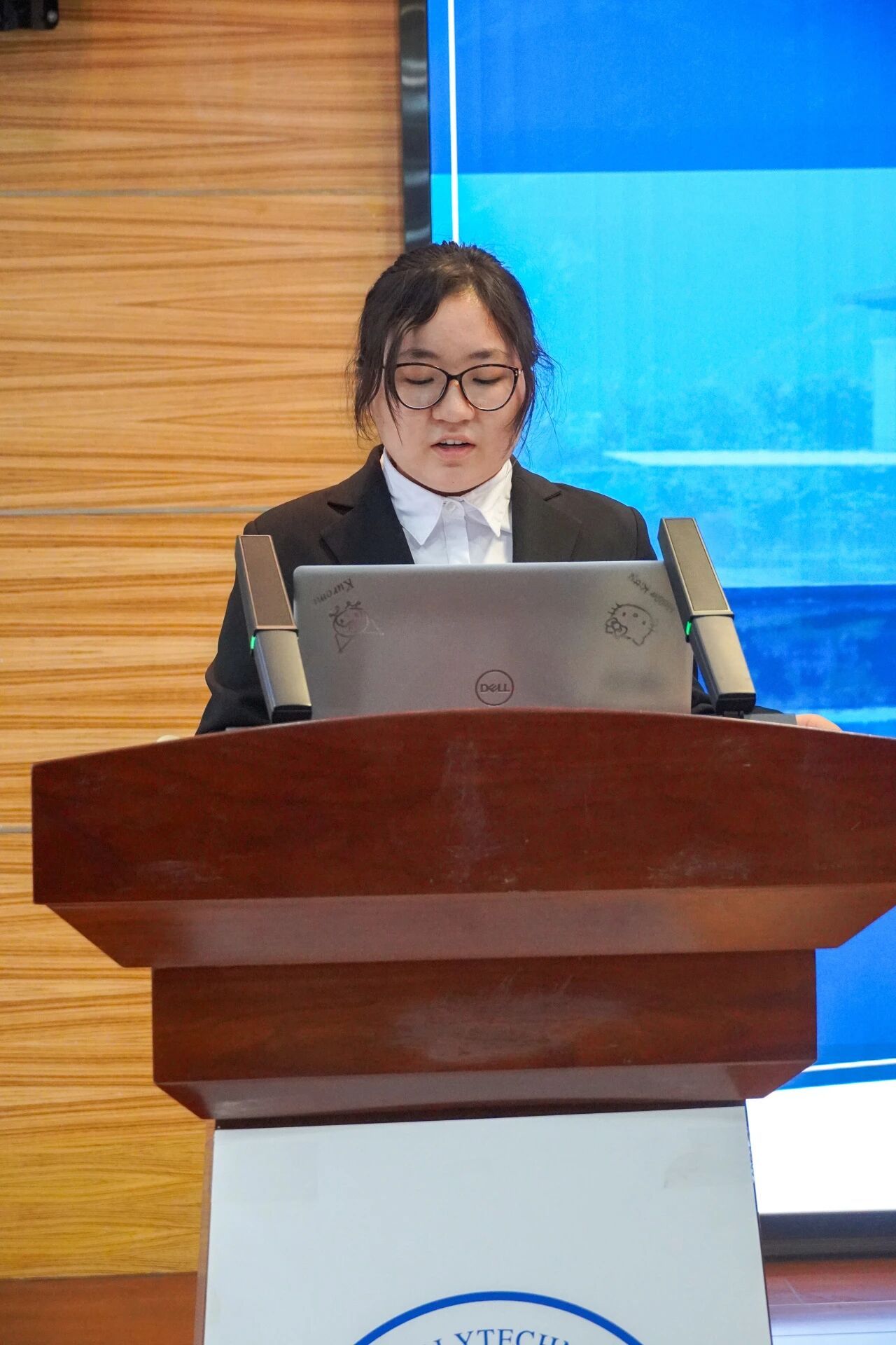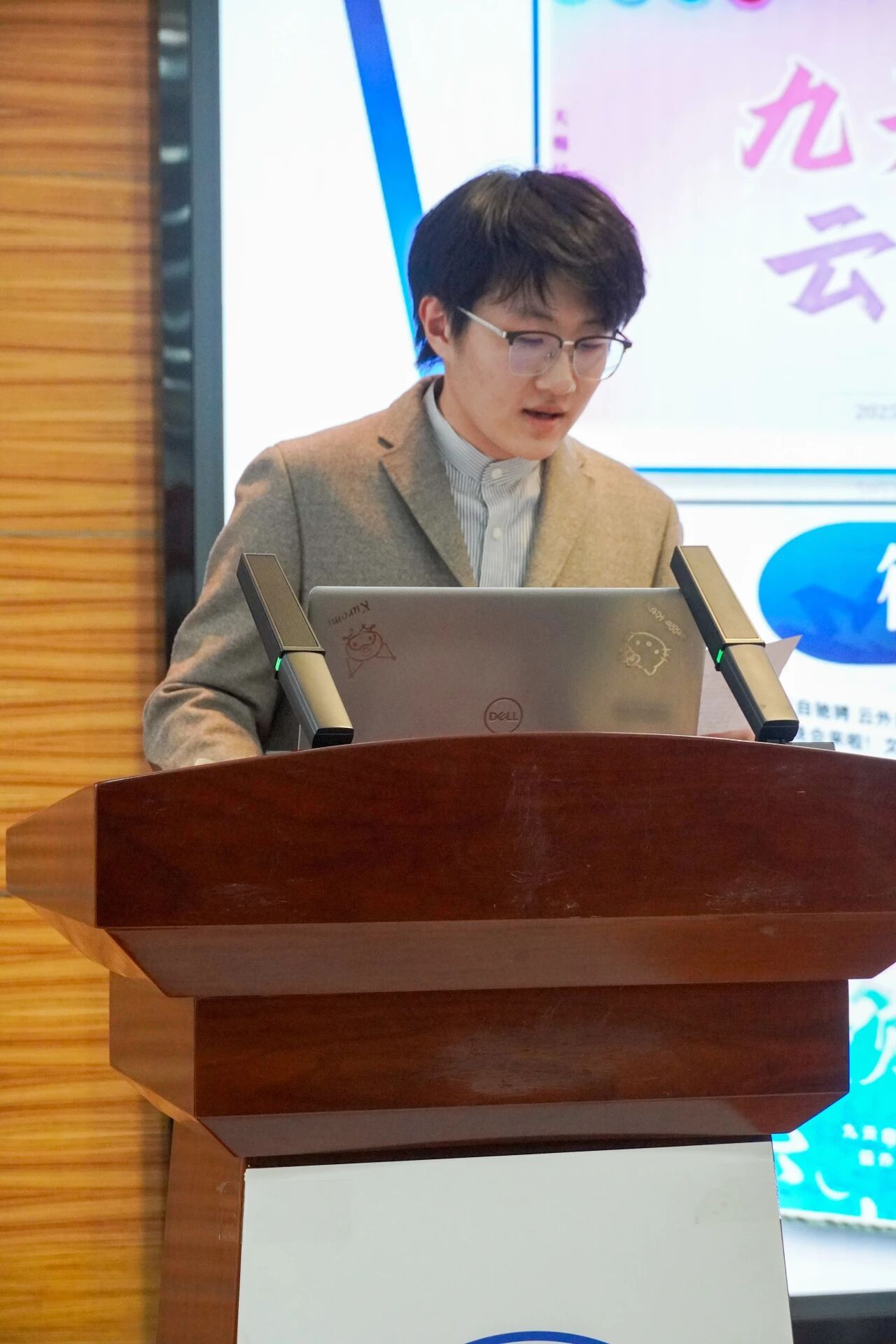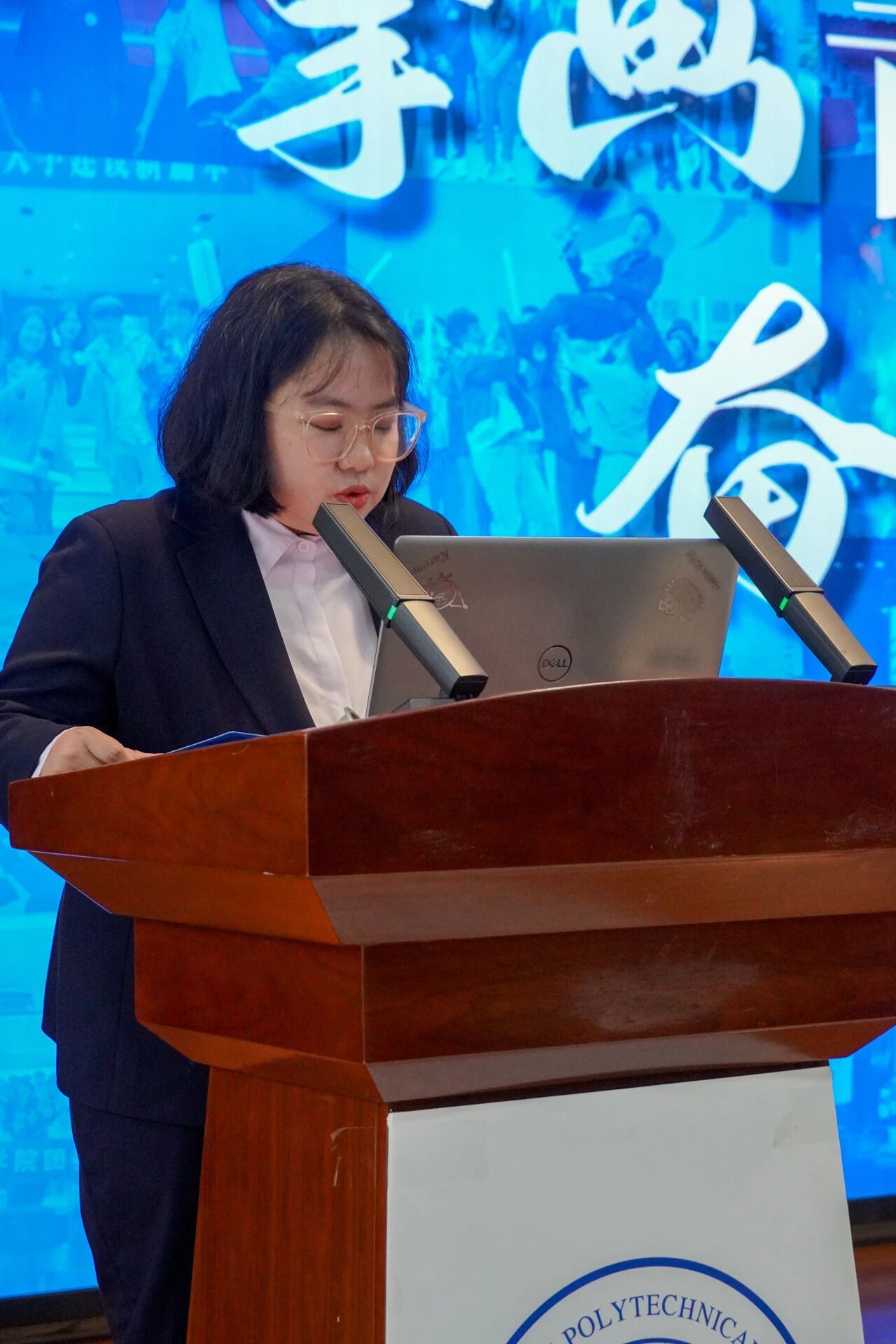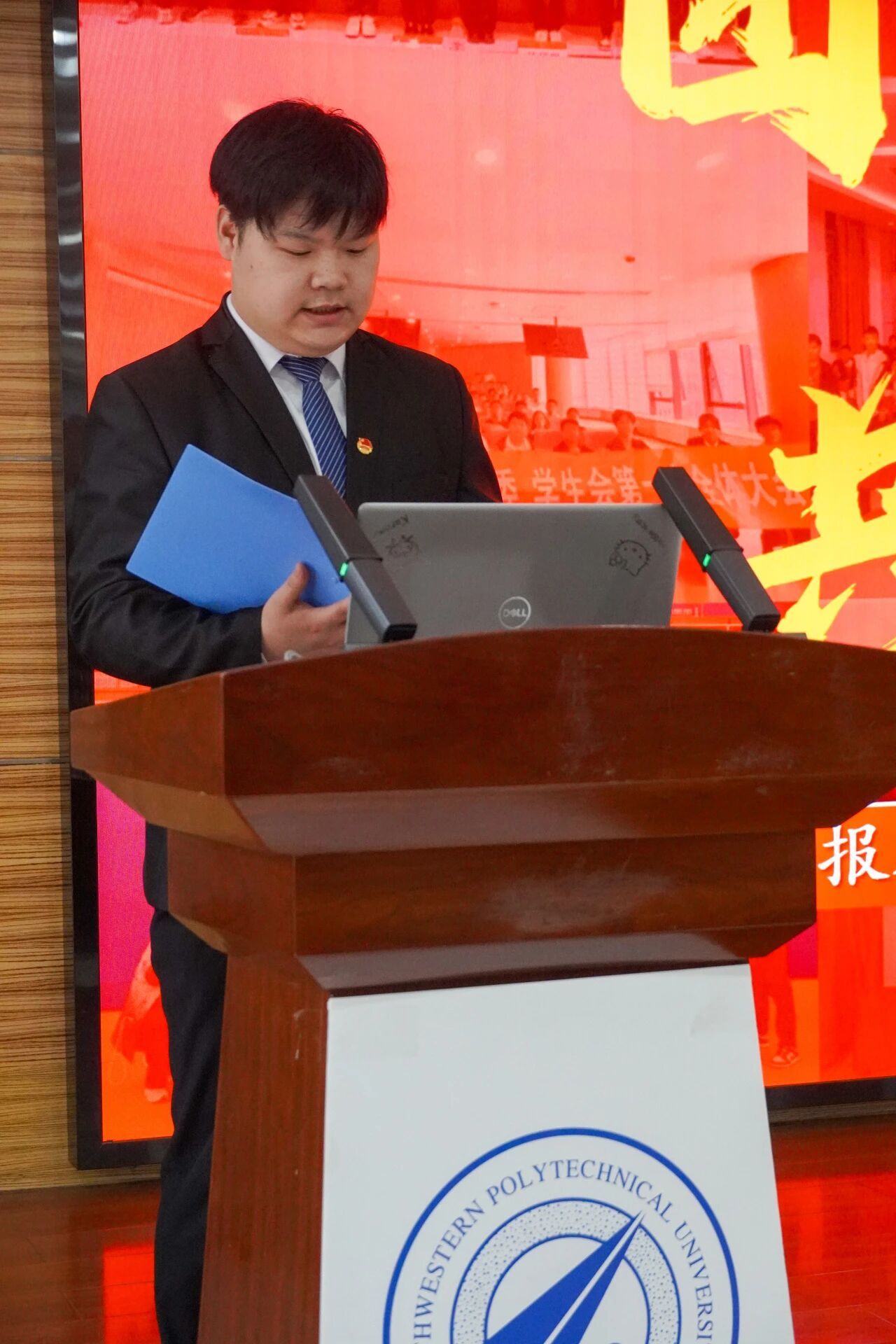 会议第三项,各部门负责人进行本学年工作汇报。学生发展中心刘嘉豪、志工部周晶晶、组织部陈芊朵、权益中心吴胡奕、宣传中心高睿、文体中心车昊宇及学习实践部白皓瑞依次上台。他们的汇报内容涵盖微团课大赛、旱地冰壶大赛、元旦游园会、迎新晚会等多项活动的筹办工作,涉及团课组织、志愿时长评定、学业帮扶、公众号运营、海报设计等具体事务。各负责人结合部门工作概况,既展现了团队风采与协作精神,也坦诚指出工作中存在的不足,并对潜在问题进行了深刻反思,为后续工作开展明确了方向。