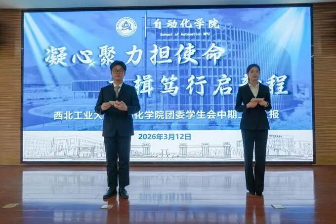 3月12日,自动化学院团委学生会2025-2026年度中期总结大会于学院报告厅开展。本次大会旨在总结学院各部门前期工作成果,反思不足,凝聚共识,明确方向,为后续工作的顺利开展奠定坚实基础。自动化学院团委书记李奥、团委副书记王崔骁及团委学生会全体成员参加了本次会议,会议由宣传中心志愿者姬昊星和谢雨珊主持。